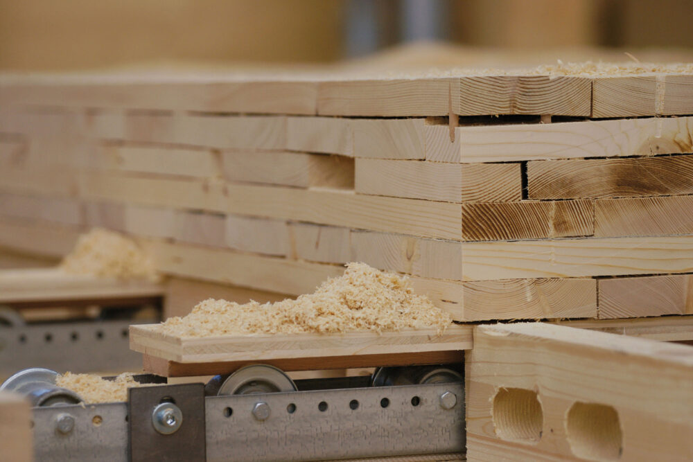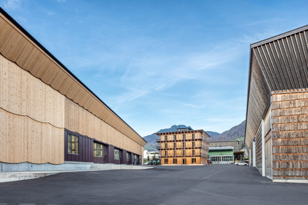 Je nach Situation erschliessen wir lokale Rohstoffe am jeweiligen Standort oder arbeiten mit Eigenholz – etwa bei Waldbesitzern, Korporationen oder Staatswäldern. So wird das Hier zum Dort – immer mit möglichst kurzen Transportwegen, die helfen graue Energie zu sparen.