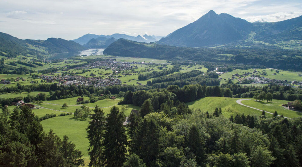 Tief verwurzelt im Kanton Obwalden: Hier wird unser Holz geerntet und handverlesen, in der Zentralschweiz eingeschnitten und getrocknet – und bei uns in Alpnach weiterverarbeitet. Und doch erstreckt sich der Wirkungskreis der Küng Holzbau AG ennet den Lopper und den Brünig. Wir denken Regionalität ganzheitlich – angepasst an Ressourcen, Kreisläufe und Projekte.
