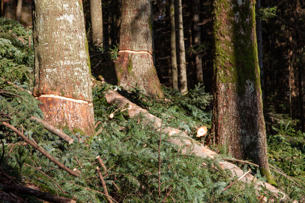 Unser Holz stammt aus Hochwäldern der Region, die im Plenterbetrieb bewirtschaftet werden: Die Förster fällen nur grosse und kräftige Bäume. Der bereits vorhandene Jungwuchs erhält dadurch Platz und Licht zum Wachsen. So entstehen ökologisch wertvolle Wälder, die vielfältige Lebensräume für Pflanzen und Tiere bieten.